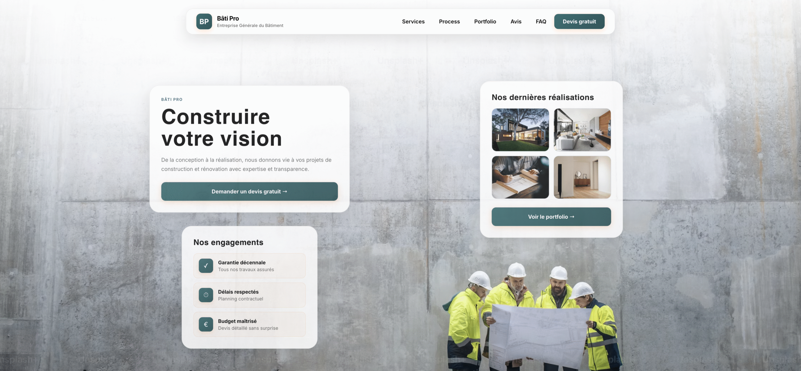Une interface sobre et professionnelle pour entreprises du bâtiment. Design épuré, contenus structurés, focus sur la méthode, la qualité d’exécution et les réalisations. Idéal pour valoriser des projets solides et une expertise durable.